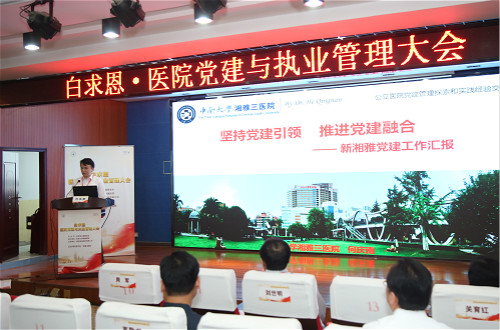 8月15日,由延安大学附属医院承办的2020年医院党建战略管理大会在革命圣地延安举行。白求恩公益金会副秘书长陈川和延安大学附属医院党委书记李小龙致辞。国家卫健委直属机关党委办公室主任王凯就《关于加强公立医院党的建设工作的意见》在线进行政策解读。中南大学湘雅三医院党委书记何庆南受邀,并以“坚持党建引领,推进党建融合”为题交流分享了医院党建工作。