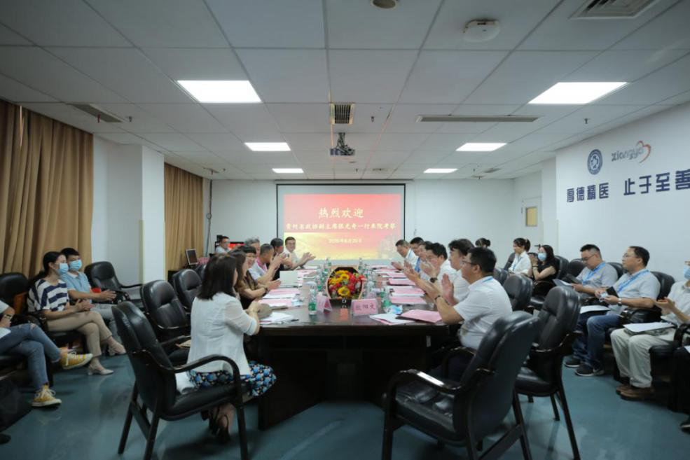 贵州省政协,安顺市人民政府、市政协,安顺市及镇宁县卫生行业等11位代表一同来访。湖南省卫健委副主任、农工党湖南省委副主委易露茜,中南大学党委常委、副校长陈立章,中南大学医院管理处处长、湘雅医学院副院长吕奔,湘雅三医院党委书记何庆南,湘雅三医院院长、农工党湖南省委副主委张国刚陪同出席。湘雅三医院党委副书记杨飞龙,党委委员、副院长朱晒红和欧阳文,以及相关科室和职能部门负责人参加。