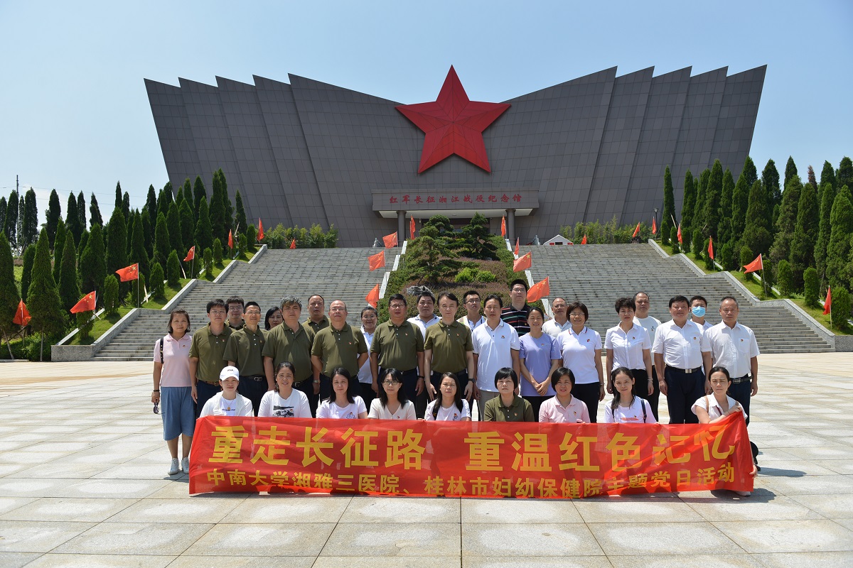 23日上午,中南大学湘雅三医院与桂林市妇幼保健院联合主题党日活动在红军长征湘江战役纪念馆举行。湘江战役是中央红军长征途中最悲壮的一战,关乎中央红军的生死存亡。红军长征湘江战役纪念馆位于广西壮族自治区桂林市全州县才湾镇脚山铺,国家在此修建了一系列纪念设施,是对在这一带牺牲的成千上万红军将士的英灵的告慰。通过参观学习,大家进一步学习贯彻习近平总书记重要指示精神,进一步了解革命历史、继承革命传统,牢记了用坚定信念和烈士鲜血铸就的伟大长征精神,增强了走好新时代的长征路的斗志与信心。