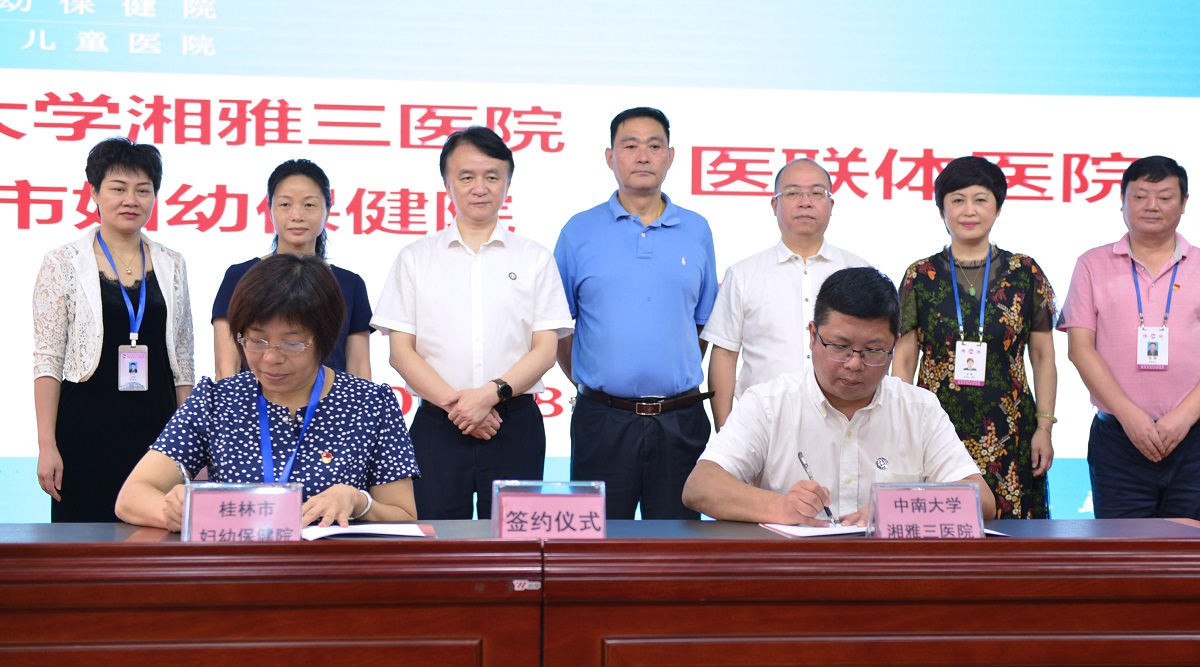 8月22日-23日,中南大学湘雅三医院与桂林市妇幼保健院(桂林市妇女儿童医院)组建医联体单位签约仪式在桂林市妇幼保健院举行,双方还共同举办了“1+1”党建与业务联学联建培训班,并赴全州县红军长征湘江战役纪念园参观学习。湘雅三医院党委书记何庆南,党委副书记杨飞龙,党委副书记、纪委书记张劲强,妇产科党支部书记、妇产科学教研室主任、妇科主任徐大宝,肾病风湿病科一党支部书记、内科学教研室主任、肾病风湿病科主任张浩,党办、党委宣传部、团委负责人,部分党总支书记,桂林市卫健委等有关部门负责人,桂林市妇幼保健院及桂林市所辖区县妇幼保健院在家院领导、中层干部、业务骨干等参加了活动。