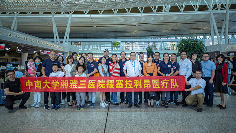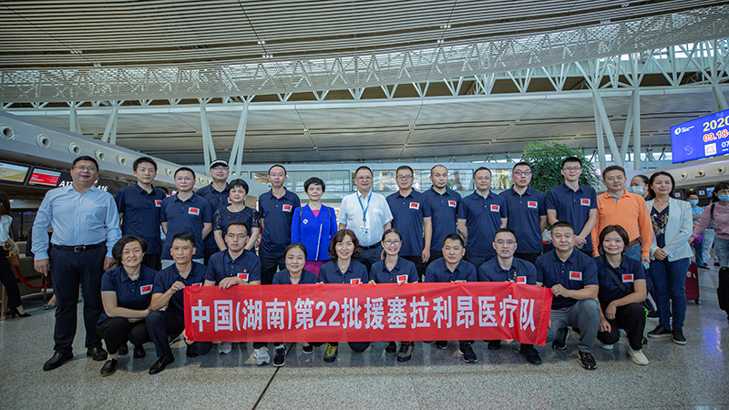 9月17日上午,以中南大学湘雅三医院专家为主体组建的中国(湖南)第22批援塞拉利昂医疗队启程奔赴塞拉利昂,执行为期一年三个月的对外医疗援助任务。医院院长张国刚、党委副书记杨飞龙,队员家属、同事等到机场为队员们送行。