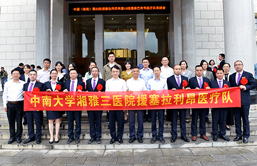 9月16日,中国(湖南)第22批援塞拉利昂医疗队和第18批援津巴韦医疗队欢送会在湖南宾馆举行。30名医疗队员将分别于本月17日和26日启程,奔赴塞拉利昂和津巴布韦,执行为期一年三个月的医疗援外任务。湖南省人民政府副省长吴桂英出席并讲话。中南大学湘雅三医院党委书记何庆南、冯超副教授分别作为援外医疗队员所属单位代表和援塞医疗队队长发言。