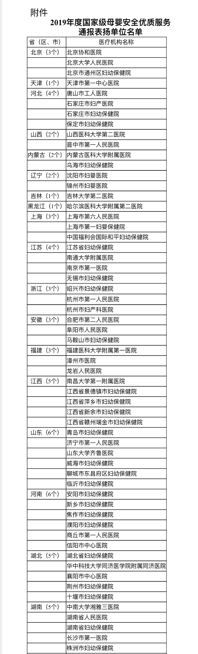 国家卫生健康委办公厅关于2019年度母婴安全行动计划实施情况的通报