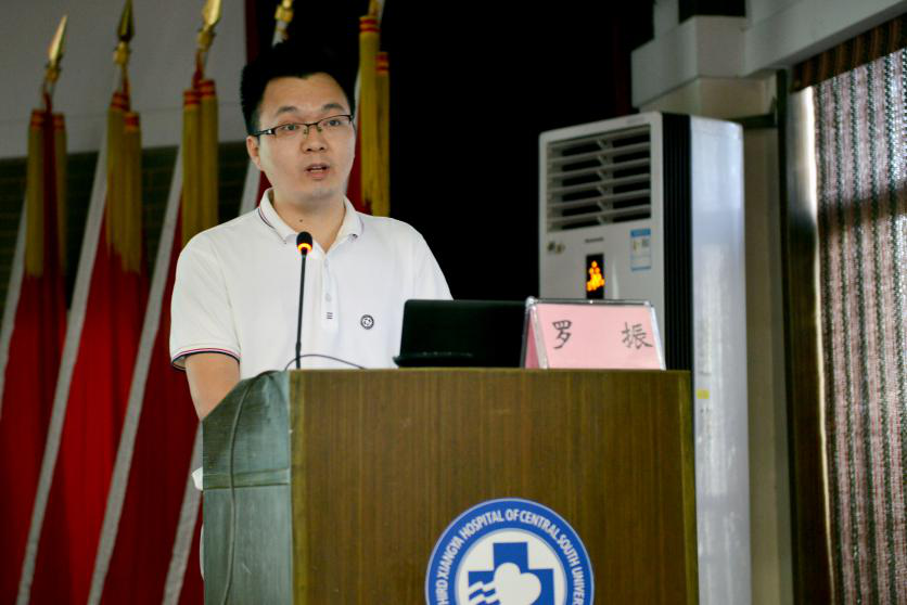 罗振汇报了医院在疫情期间的核酸检测情况并回顾了他的2次援助任务。医院检验科自1月25日(大年初一)正式开展新冠肺炎核酸检测,检测团队采用“三班倒”的形式迅速投入工作,截至9月21日,核酸实验室共检测标本59706份,超量完成了任务。应国务院新型冠状病毒肺炎疫情联防联控机制(医疗救治组)要求,罗振和同事许欢临危受命,作为湖南省卫生健康委派出的核酸检测队成员,于6月紧急支援北京,对接清华大学附属垂杨柳医院。垂杨柳医院当时人员、设备、资源及其不足,罗振和队友们即刻着手改造和优化实验室,多重努力下,垂杨柳医院的日检测量从之前的150次增长为1200次。7月13日,完成援京任务的罗振返回长沙,隔离期刚过不久,8月3日又紧急接到援疆任务,当晚出发。检验人离病毒最近,但他们争分夺秒,以最快的速度为前方提供准确数据,确保不漏掉一个病例,为疫情及时控制贡献了不可忽视的重要力量。然而回顾起这些工作时,罗振将困难一笔带过,他说,我只是一名普通的检验工作者,是13亿齐心抗疫中国人中的一员。