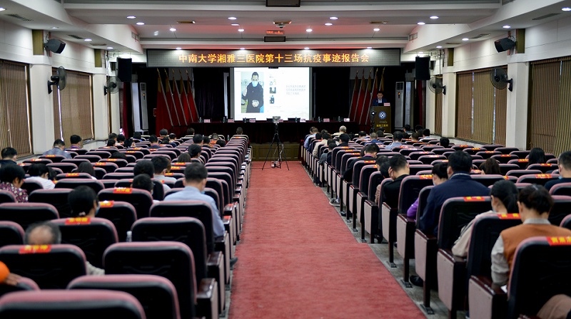 9月24日下午,中南大学湘雅三医院举办新湘雅第十三场抗疫事迹报告会,全体在院院领导、中层干部参加。医院援京援疆代表检验科主管技师罗振和医院感染科副主任(主持工作 )刘振国为大家讲述了他们的抗疫故事。会议在门诊楼五楼多功能厅设一个主会场,在科教楼三楼多功能会议室、外科楼二楼学术报告厅分别设置两个分会场。报告会由党委副书记杨飞龙主持。
