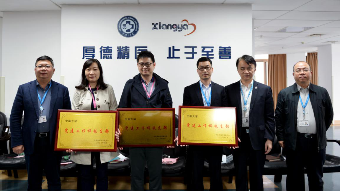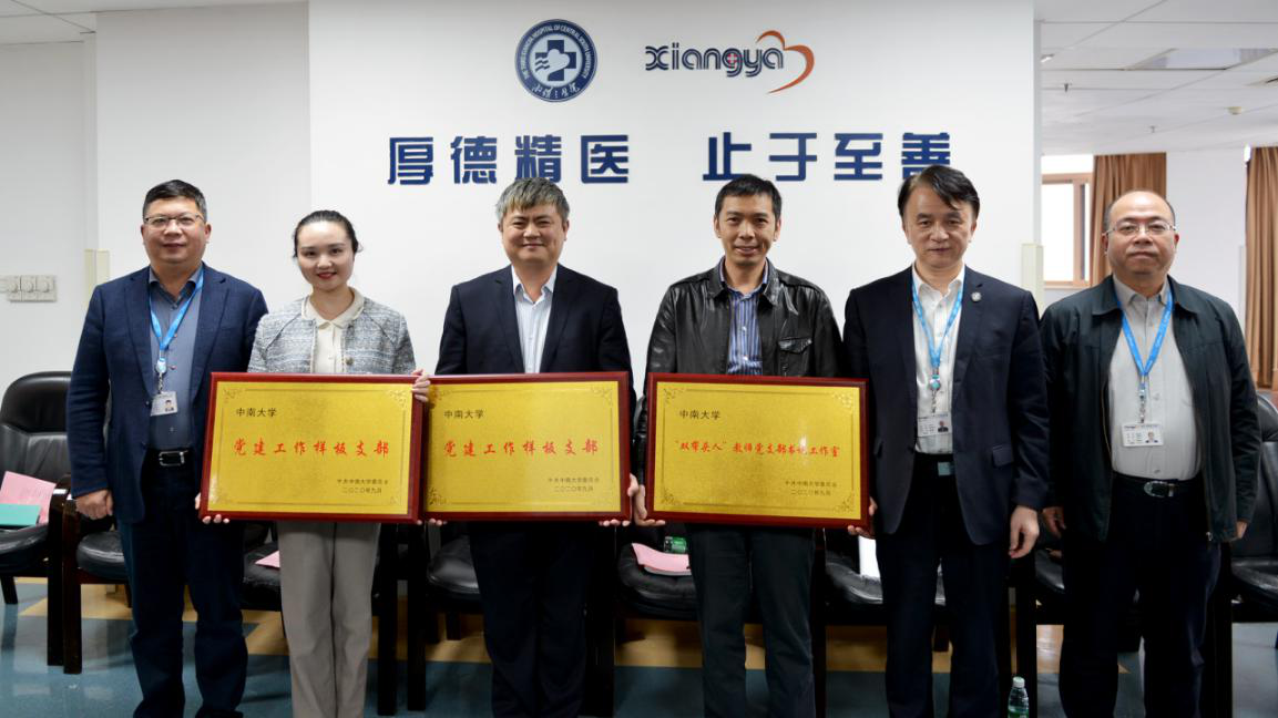 推进会上,院领导何庆南,杨飞龙,张劲强为医院第一批中南大学样板党支部(第一党总支呼吸内科党支部、第三党总支肾病风湿病科党支部)、第二批中南大学样板党支部(第二党总支儿科党支部、第六党总支药剂科党支部、第九党总支第一党支部)、中南大学“双带头人”教师党支部书记工作室(第五党总支放射科党支部书记工作室)授牌。