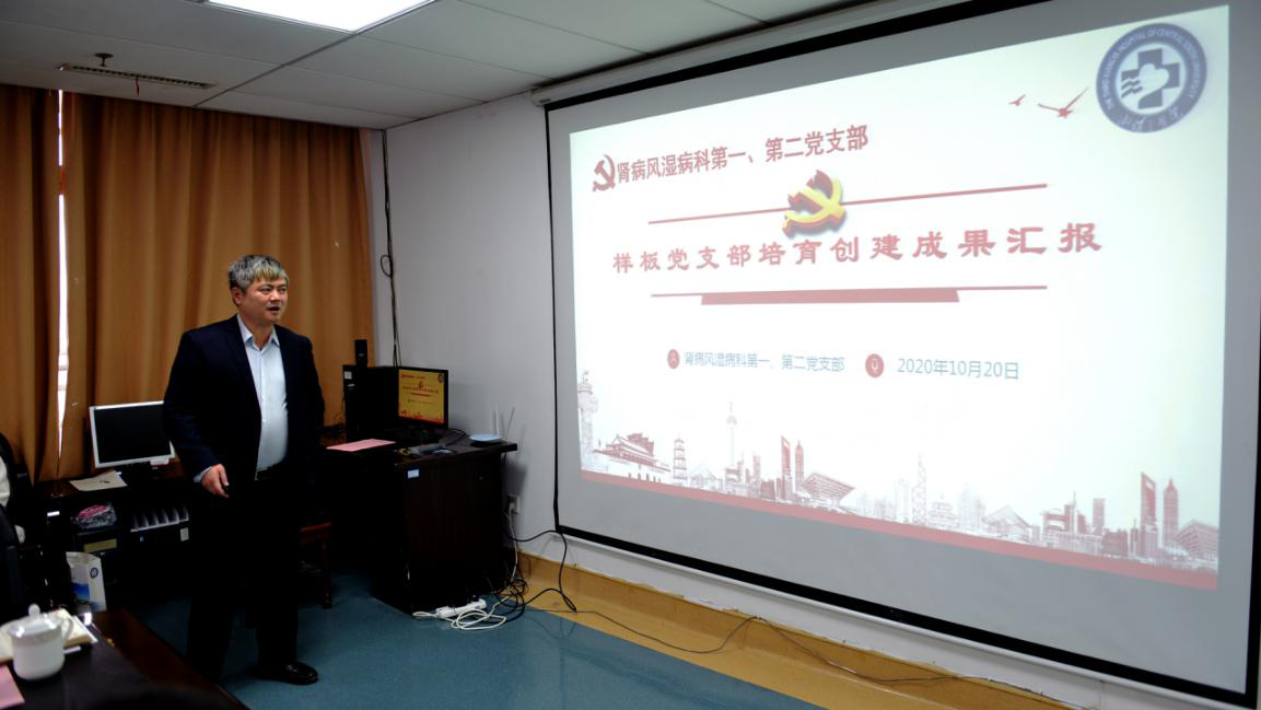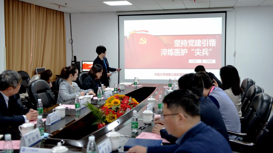 湘雅三医院第一批中南大学样板党支部——第三党总支肾病风湿病科党支部书记张浩同志从学科建设、人才培养、党建引领等多方面进行了样板党支部培育创建成果汇报。第四党总支书记孙慧蓉同志从抓五化建设、抓主题党日、抓党建业务融合等多方面分享了总支党建的经验做法。