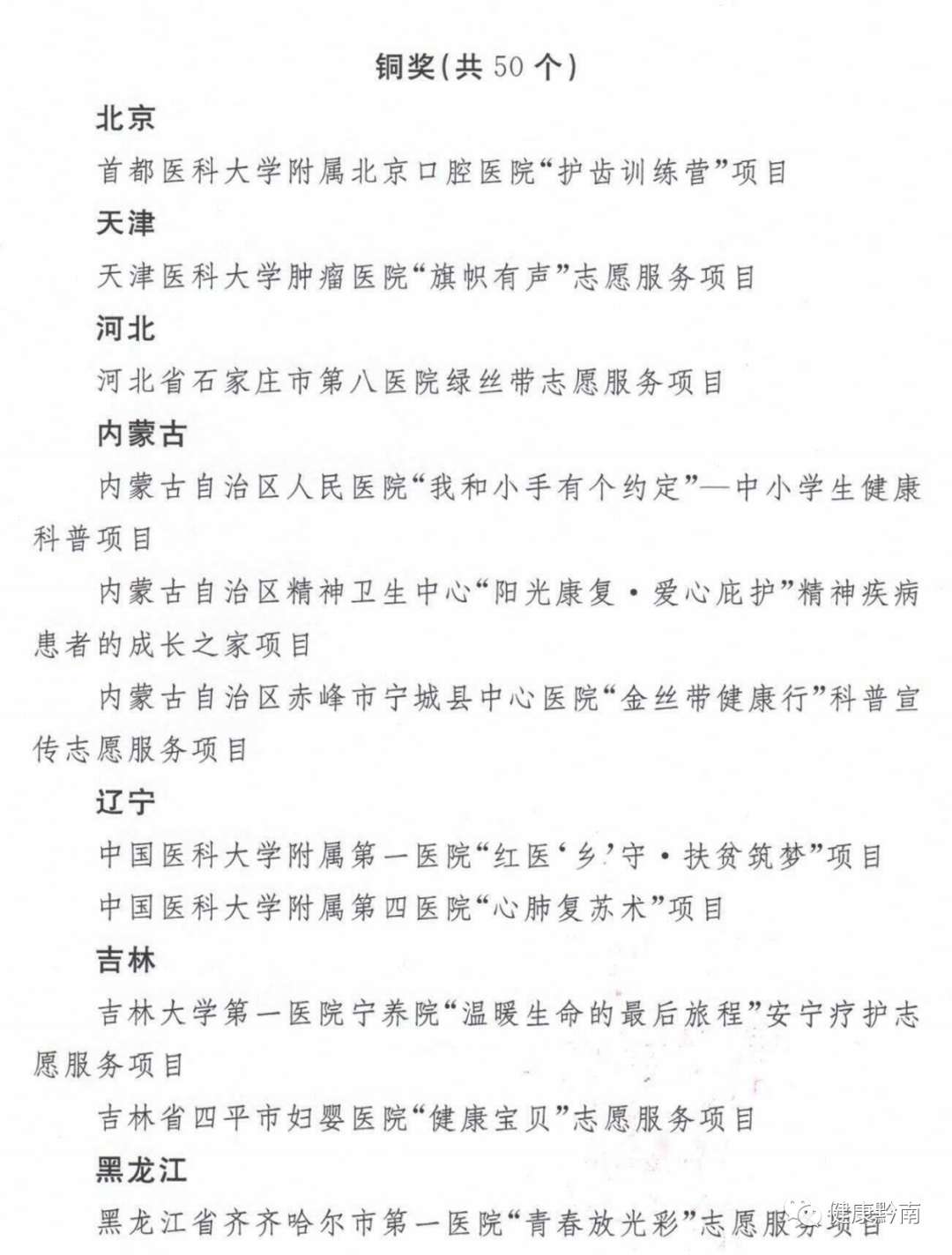 2020年7-10月,经第二届全国卫生健康行业青年志愿服务项目大赛近三个月的角逐,通过申报材料、视频路演等综合比拼,中南大学湘雅三医院“生命之树”守护者——爱心“1+1”健康直通车项目脱颖而出,荣获全国卫生健康行业青年志愿者服务项目大赛“铜奖”。本项目获奖,是今年医院继荣获全国抗击新冠青年志愿服务先进集体(健康管理中心“天使之光”志愿服务队)、湖南省疫情防控应急志愿服务项目大赛银奖(火线上的抗疫突击队,病房里的‘临时家属’——援鄂抗疫志愿服务项目)之后的又一斩获,体现了团中央、国家卫健委、中国青志协、团省委、省直团工委、省卫健委团委及中南大学团委等上级主管部门对医院工作的肯定,彰显了医院在志愿服务领域的示范作用与领先地位。