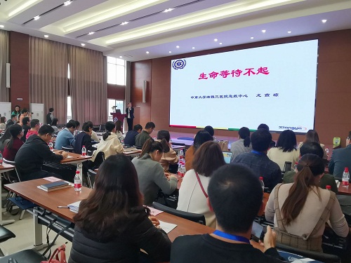 2020年11月5日,由湘雅三医院120急救中心护士长龙燕琼长带领的急救团队走进中南大学,在毓秀楼318教室为湖南省“高校学生安全管理与危机事件应对专题研修班”的100名学员进行了四个小时的“急救基础理论和急救技能训练”课程。