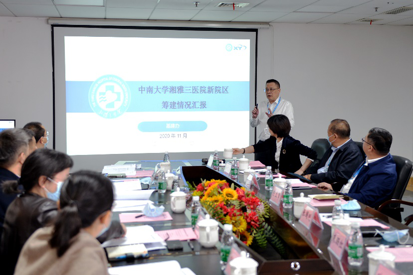 在观看医院宣传片后,湘雅三医院院长张国刚报告了医院经济运营管理基本情况,并就医院新门急诊大楼的建设以及新院区前期规划工作安排进行了汇报。他表示,在国家卫健委及中南大学的领导下,在几代三院人的拼搏中,湘雅三医院从建起来、大起来,逐步迈向强起来的征程,而今医院发展迎来新的历史机遇,希望国家卫健委给予湘雅三医院更多指导和更大支持。