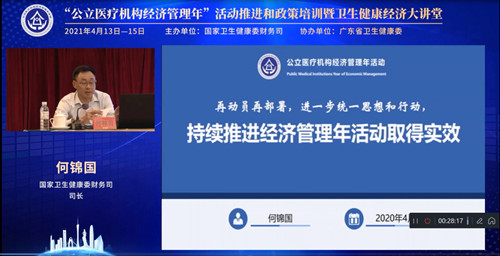 国家卫生健康委财务司司长何锦国以“再动员再部署,进一步统一思想和行动,持续推进经济管理年活动取得实效”为主题讲话,并通报部署经济管理年活动。何锦国强调要综合研判内外部环境形势和医院内部管理需求,从规范管理、提质增效、强化监管三个方面着手,持续推进公立医疗机构经济运行管理和内涵建设,着力提升经济管理能力和治理水平。