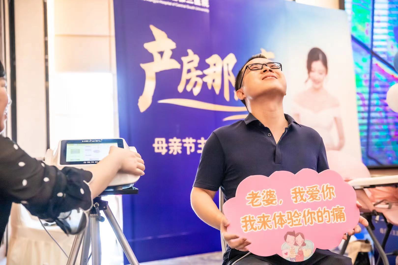 专家讲座后,准爸爸们闪亮登场,他们一级一级体验分娩的疼痛,一个个都痛的龇牙咧嘴、满头大汗,充分体验了孕妇的艰辛与坚强。