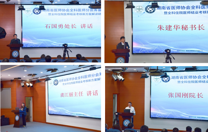 筹备会后,召开了全科住院医师实践技能结业考核新方案解读研讨会。湖南省卫健委科教处处长石国勇、湖南省医师协会副会长兼秘书长朱建华、湖南省全科医生培训管理办主任虞江丽、中南大学湘雅三医院院长张国刚、副院长邓云龙等领导出席了开幕式。开幕式由中南大学湘雅三医院姚晨姣教授主持。