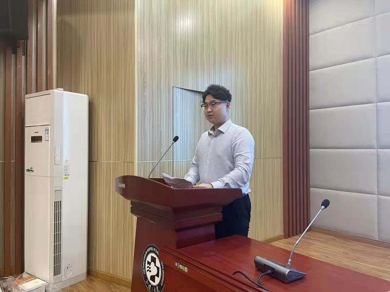 丁质钰作为优秀共产党员代表进行发言。他分享了在医院读研究生期间作为一名共产党员的学习经历与体会,并向大家传递面对“贫困患者”,不忘初心,传递爱心的理念。面对“特殊患者”,施以特殊照顾的思维;面对“突发疫情”,要有逆行向前的勇气。