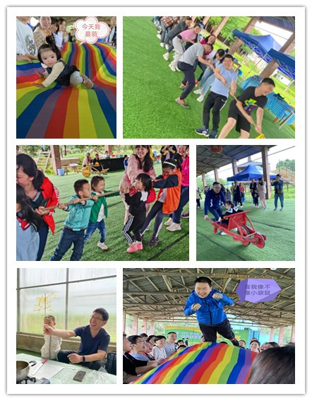 此次亲子运动会包含拔河比赛、推土车比赛、彩虹布爬呀爬、蜜蜂课堂、制作香草、做糖人、种植玉米等趣味活动。系列活动过程中,彼此加油声、欢呼声、笑语声此起彼伏,虽然天公不作美,遇到下雨,但是也阻挡不了我们参与活动的热情。通过亲子间的游戏活动,大家好像又回到了童年时代,多了一份趣味,多了一份童真,体验到了运动的快乐,竞争的乐趣,参与的欣慰。
