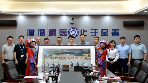 会后,江华县人民医院向医院赠送“对口帮扶 深情厚谊”的瑶族织锦,双方合影留恋。