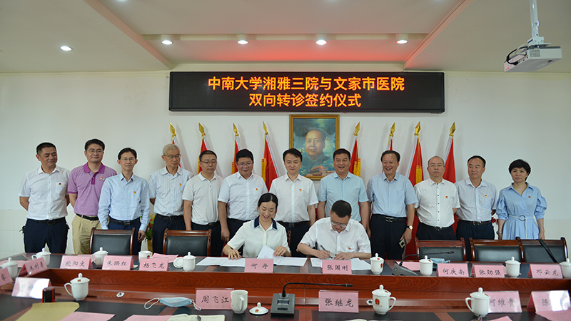 在活动的第一站浏阳文家市医院,文家市医院院长何维贵,文家市镇党委副书记、镇长张继龙先后表示,优质医疗资源下沉将造福当地百姓,他们对中南大学湘雅三医院多年来的医疗指导和即将展开的双向转诊表示感谢,并希望未来湘雅三医院能给予当地医院更多的支持。中南大学湘雅三医院党委书记何庆南指出,作为国家公立大型综合性三级甲等医院,湘雅三医院有责任帮扶基层医院,服务老区人民,此次与浏阳文家市医院签订双向转诊协议,将优质医疗资源与老区人民共享,更好地服务老区人民健康。湘雅三医院院长张国刚代表医院与文家市医院签订了双向转诊协议,心血管内科主任、心内科党支部书记蒋卫红,内分泌科主任、内分泌科党支部书记金萍,医务部副主任、第九党总支第三党支部书记刘作良进行了查房、疑难病例讨论和指导。