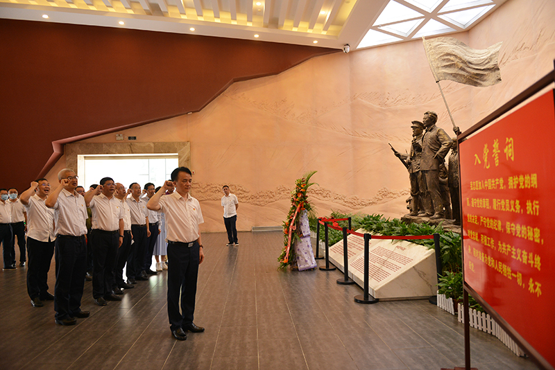 在秋收起义文家市会师纪念馆,党委书记何庆南率领全体党员面向党旗、举起右手,再次庄严宣誓。接着,大家在讲解员的带领下,先后分“高举新旗帜”“开辟新道路”“创建新军队”“苦难辉煌”四个部分参观学习。一张张照片、一件件文物、一篇篇文献、一个个故事,无不彰显中国共产党的为民初心和家国情怀,让全体人员更加深刻鲜活地感受到革命历程的艰难曲折。