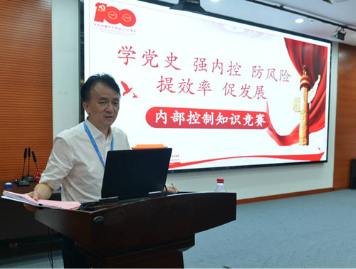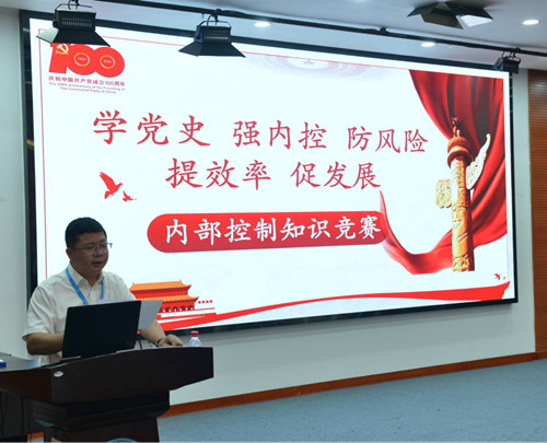院长张国刚致辞。他强调,在中国共产党成立100周年之际,为实现“党成立100年时,在各方面制度更加成熟更加定型上取得明显成效”的目标,医院举办本次“管理能力提升——学党史 强内控 防风险 提效率 促发展”内部控制知识竞赛,旨在以“公立医疗机构经济管理年活动”为契机,夯实内控管理体系建设成果,进一步规范医院经济活动及相关业务活动,有效防范和管控内部运营风险,建立健全科学有效的内部制约机制,提升医院管理水平,为“十四五”规划开好局、起好步,以优异成绩庆祝建党100周年。