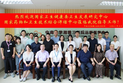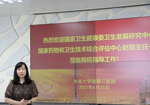 6月25日上午,国家卫生健康委卫生发展研究中心赵琨研究员一行来到中南大学湘雅三医院开展湖南省药品临床综合评价工作调研。湖南省卫生健康委二级巡视员武昆、药政处处长易平、副处长章小林及信息统计中心郭海等陪同调研。