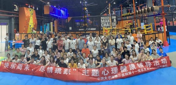 为落实“我为师生办实事”实践活动要求,切实把党史学习教育成效转化为解决广大学生实际需求,6月27日,中南大学湘雅三医院第十一党总支联合朋辈心理互助队在飞吧运动公园开展“快乐周末,尽情跳跃”心理健康辅导活动。活动旨在帮助同学们释放心理压力,放松心情,增加心理弹性,进一步促进同学们的心身健康,并重新焕发对学习的热情。中南大学湘雅三医院第十一党总支书记刘典、朋辈心理互助队成员带领医院研究生参加了此次活动。