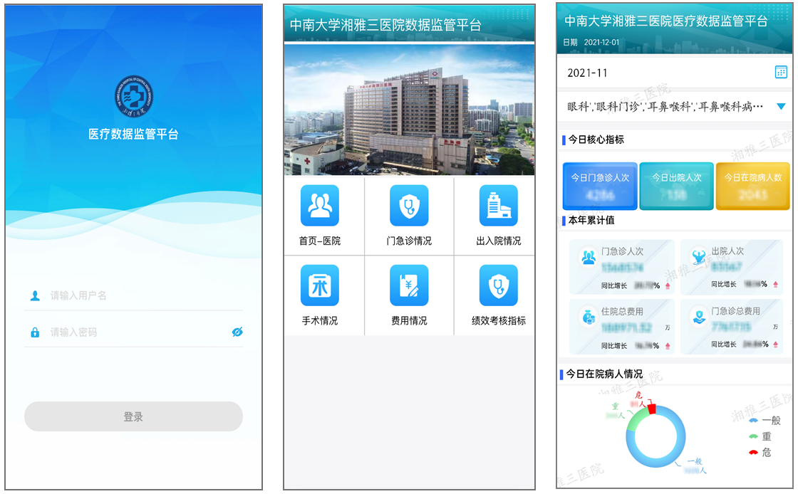 图2.中南大学湘雅三医院数据监管平台移动端