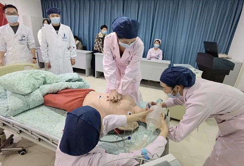 11月30日,湘雅三医院妇科21病区全体医护人员在外科楼11楼示教室开展医护一体化情景模拟应急演练。演练由培训组长谢宗洛组织,妇科副主任易水晶、21病区护士长戴婵媛现场指导,21病区全体医护人员参加,旨在提高医护人员急救应急能力、团队协作能力、医疗安全意识。