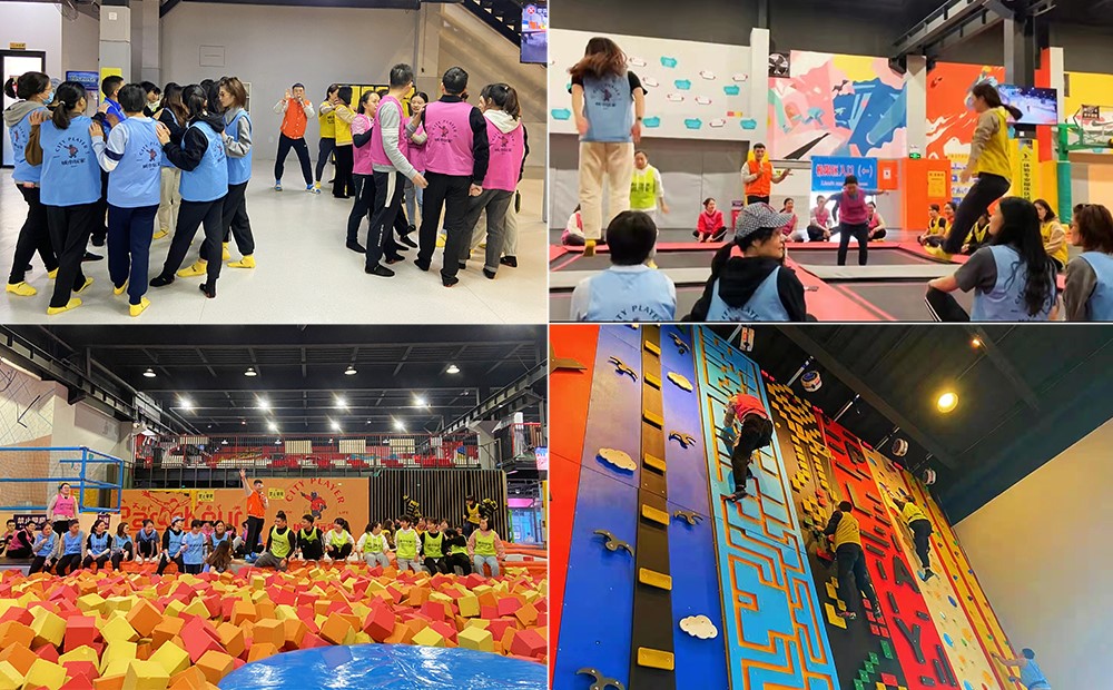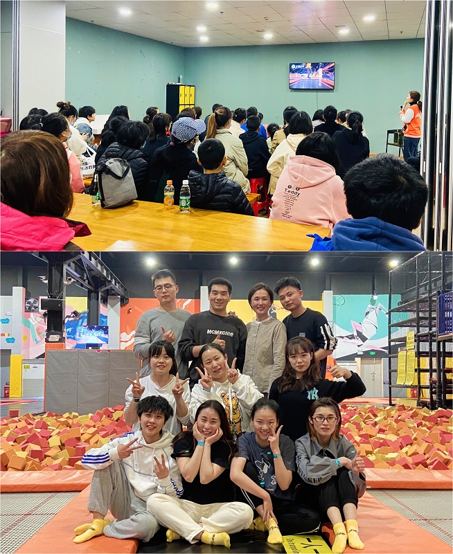 全体队员共分成四个小组开展活动,轻松的破冰活动迅速地拉近了同伴之间的距离,蹦床活动、攀岩竞赛等精心设计的项目极大地激发了大家的热情,队员们积极配合、迎难而上、大胆挑战,在相互加油鼓励中完成了一个个挑战项目。