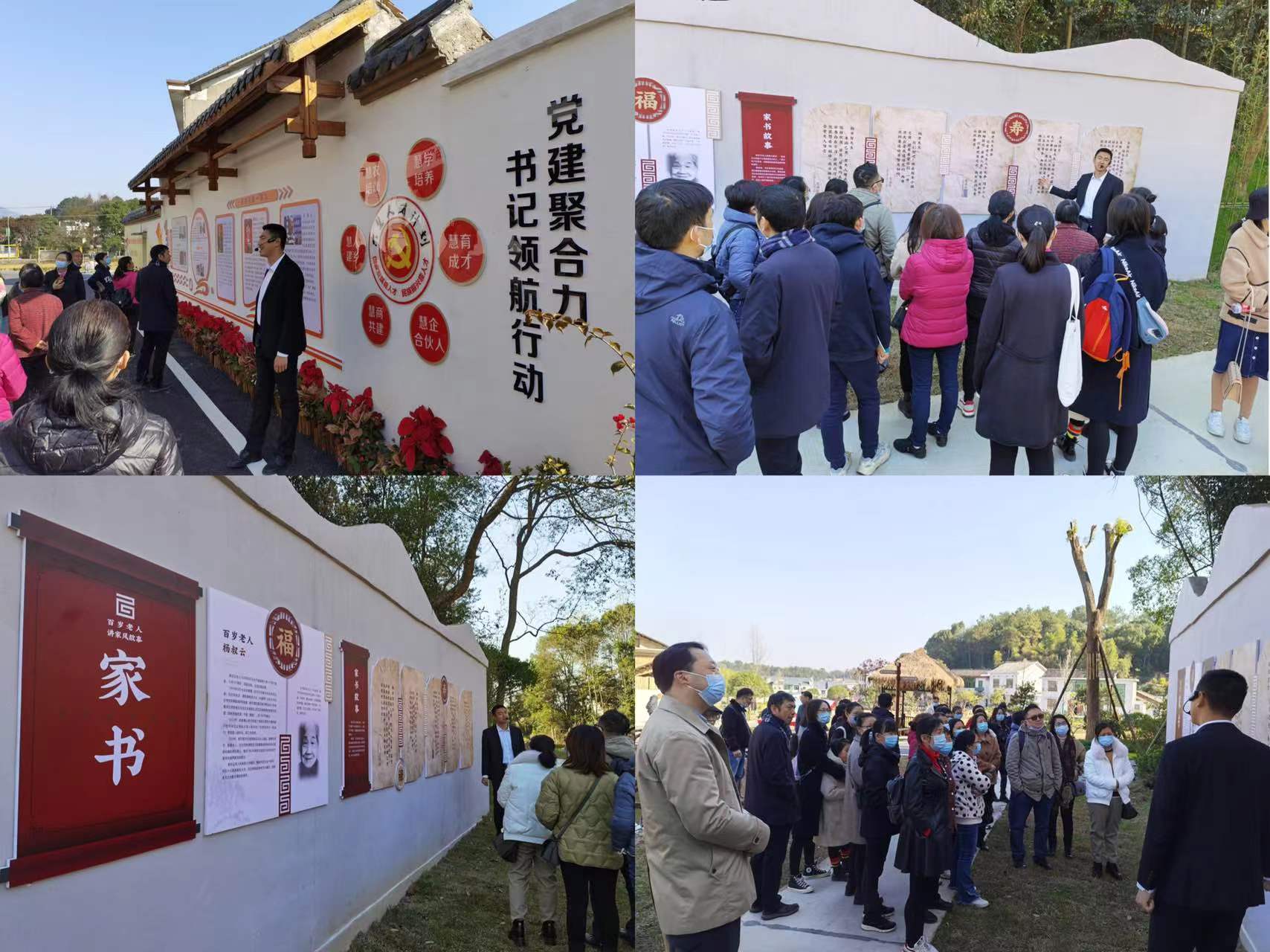 活动第三部分为参观社会主义新农村建设。党员们走进开慧村余家坳美丽宜居村庄建设现场,丰富的文化墙内容惹人注目:厅官当村干部的“中国好人”朱有志、行长当组长的“最美乡贤”缪曼聪,还有百岁老人杨淑云讲述家风故事,“一个好人带动一群人,一群好人温暖一座镇”的画面在这片红土地生动上演。此外,余家坳组的村民们家家户户都挂上了一幅松木制作的楹联,“善结竹松邻,天地养生,百岁多因山水绿;忠承英烈志,精神励我,千秋永葆板仓红”……这些内容丰富的楹联作品诠释着开慧板仓教育之乡的优良传统,让开慧的红色文化得以更好地传承。党员们无一不被这些默默无闻的建设者所激励,都表示要把共产党人的使命担起来,为社会主义建设、为中华民族的复兴贡献自己的力量。