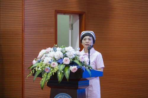 龙开超代表卫健委向护理工作者致以真挚的祝福。他肯定了新湘雅护理人在过去一年中作出的突出贡献。他指出,在健康湖南“十四五”建设规划背景下,护理同仁们更要牢记初心和使命,继续发挥新湘雅护理服务的优势,扎稳根基、创新发展,为实现健康湖南、健康中国做出贡献。