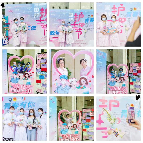上午9点起,院团委工作人员及驻点医务社工、河西王府井爱心志愿者们在医院外科楼一楼精心布置好现场。精美的海报、温馨的打卡墙吸引了来往人员驻足观看,他们纷纷写下自己的祝福,感谢医护人员辛苦的付出;青年医护人员也写下自己的青春誓言:奋斗的青春最美丽,愿扎根岗位,自觉担当尽责,为广大人民的健康保驾护航。