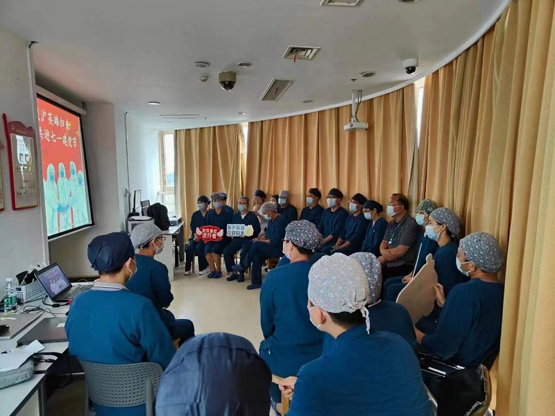 6月27日下午,中南大学湘雅三医院第七党总支ICU党支部在“七一”建党节来临之际,组织开展“分享战疫故事, 共迎党的生日”主题活动。第七党总支书记毛赤丹以及ICU全体党员参加,活动还特邀援沪抗疫归来的六位重症同仁讲述援沪故事、分享抗疫经验,活动旨在继续发扬党的优良传统和作风,营造拼搏进取、勇担重任的浓厚氛围。