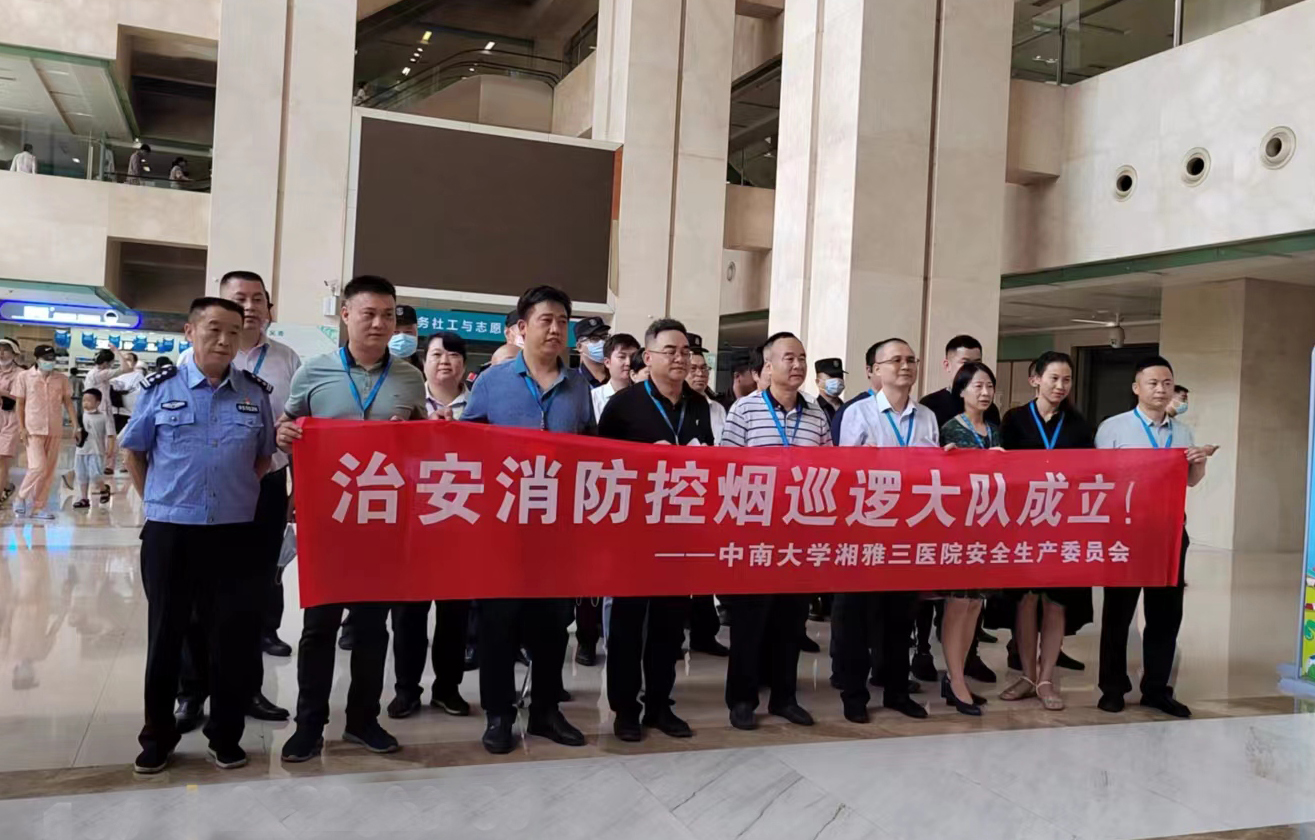 6月30日上午,根据安全生产月系列活动安排,中南大学湘雅三医院在外科楼一楼大厅举行禁烟、控烟巡查行动启动仪式暨治安消防控烟巡逻大队成立授袖标仪式。启动仪式由医院党委委员、副院长邓云龙主持,医院办公室、安全保卫部、后勤保障部、医务部、护理部、银盆岭派出所驻医院警务室民警、物业公司、保安公司代表参加。