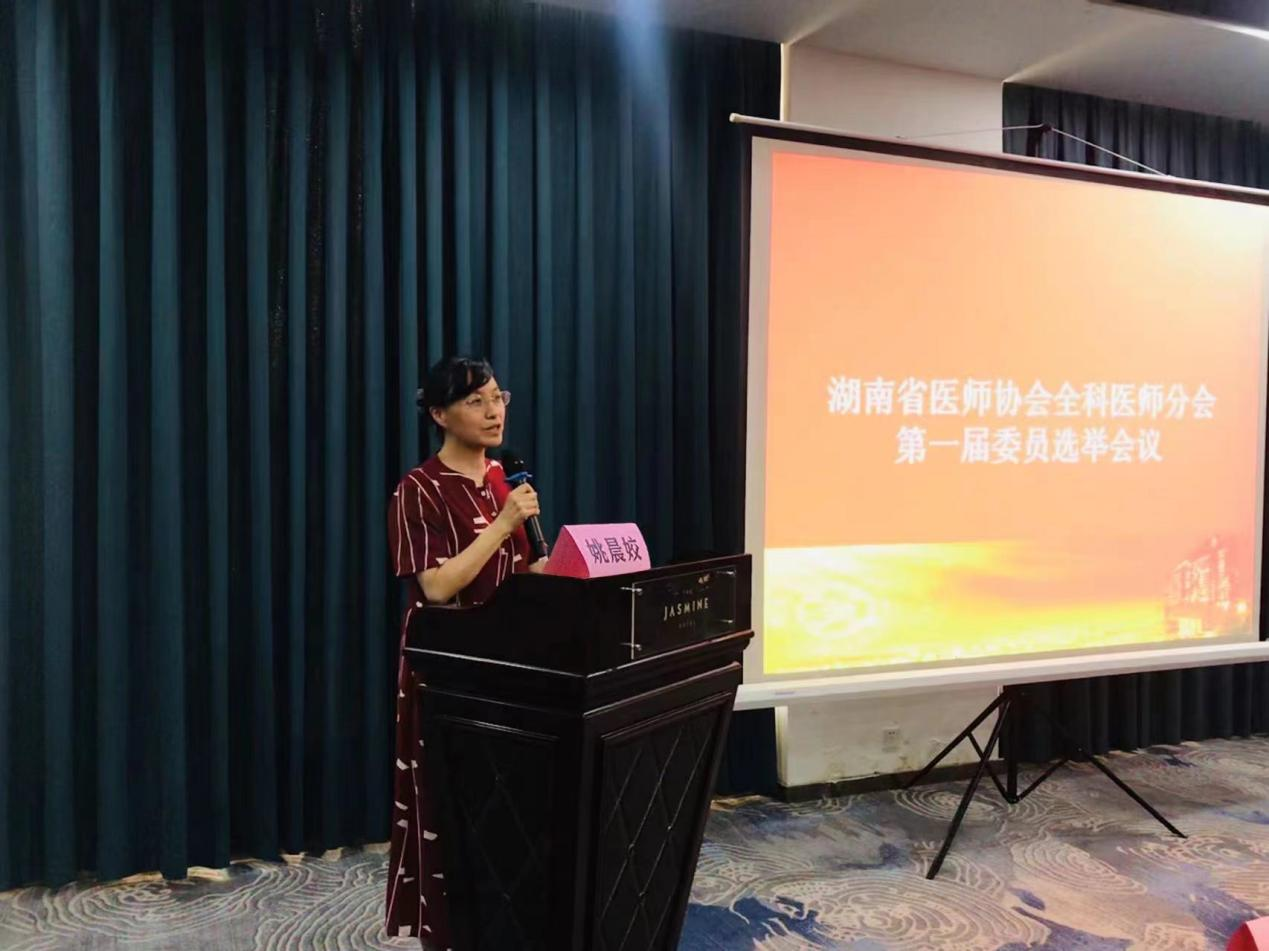会议由湖南省医师协会副秘书长郭洁主持,按照《湖南省医师协会章程》及《湖南省医师协会专科分会管理办法》相关规定,经湖南省医师协会常务理事会审议通过,同意设立湖南省医师协会全科医师分会,挂靠中南大学湘雅三医院。通过组织程序选举产生了湖南省医师协会全科医师分会第一届委员名单。中南大学湘雅三医院姚晨姣担任湖南省医师协会全科医师分会首任会长,张卫茹、罗荧荃、范自力、刘翠中为副会长,黄爱群、黄芳、林桦、刘飞奇、陆煜、吴健、颜建辉、张辉容8名专家任常务委员(按姓氏拼音排序),胡德喜等16名专家任委员。