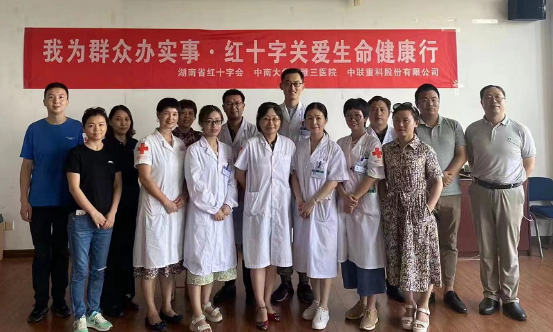 7月13日,中南大学湘雅三医院携手湖南省红十字会在湖南中联重科望城工业园联合开展“我为群众办实事,关爱生命健康行”义诊活动,关心和关注新兴产业工友的身体健康,助力他们加强对常见病和职业病的防治。义诊活动医护团队由中南大学湘雅三医院口腔科主任郭新程、妇产科教研室副主任易水晶、烧伤整形科副主任医师尹朝奇、皮肤科医生蒋玲、心血管内科医师马熠、移植外科医师张鹏鹏、资深护理专家苏红辉、主管护师何秋景等组成。湖南省红十字会、中联重科、中南大学湘雅三医院社会服务中心相关负责人参加活动。