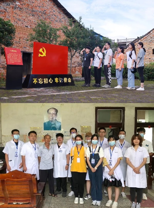 在江华县,实践团还参观了江华同志故居。 江华,原名虞上聪,是中国共产党优秀党员,党务工作和政法战线的杰出领导人,曾任中共中央顾问委员会常务委员,最高人民法院院长,井冈山和长征路都留下过他的足迹。为传承红色基因、缅怀革命前辈,实践团中的党员同志在当地“四盏马灯”广场重温入党誓词。