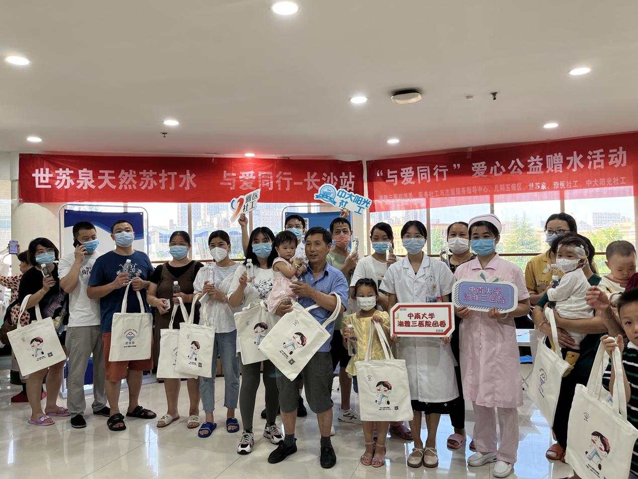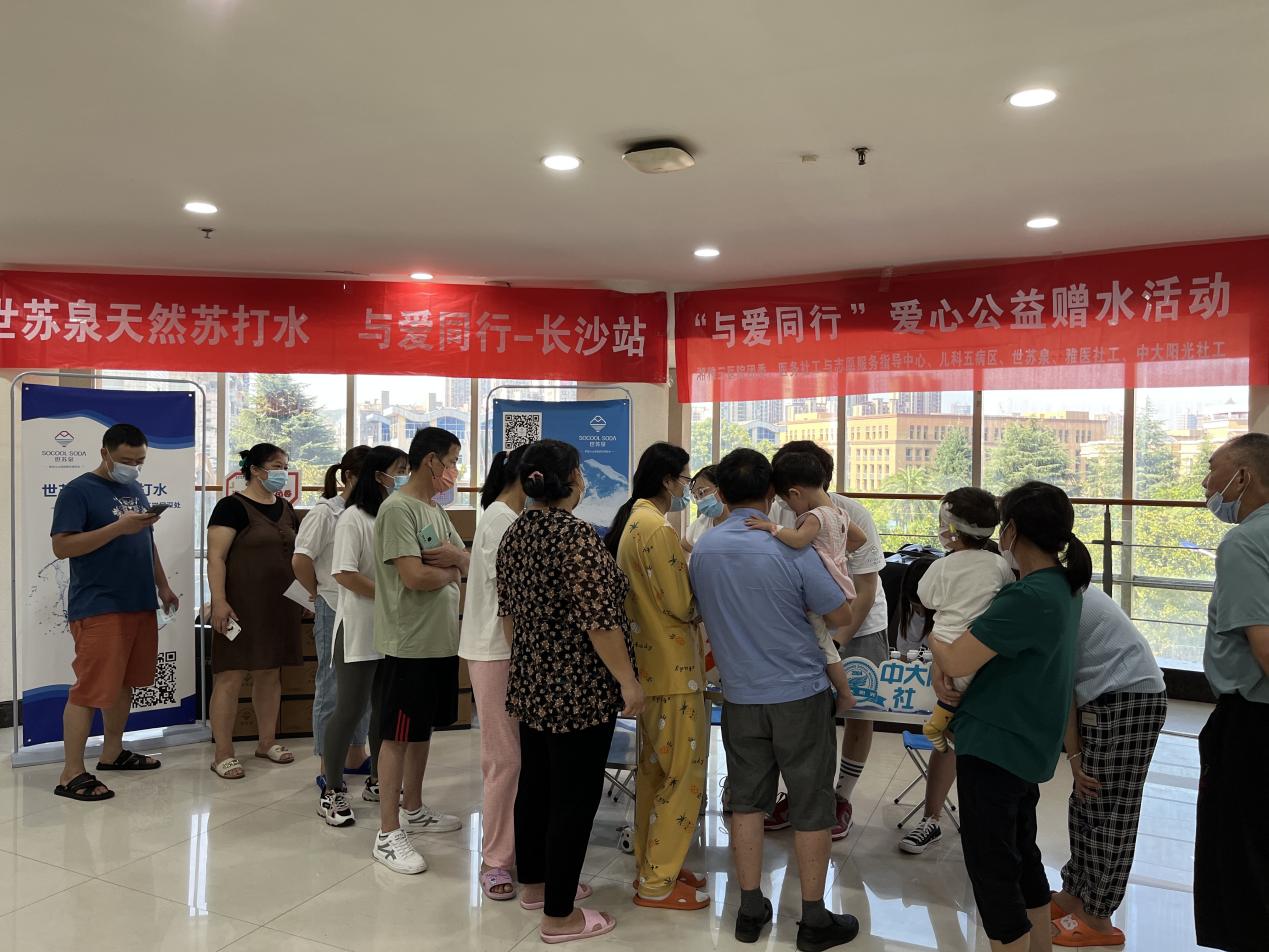 夏日炎炎,儿科五病区却凉爽有爱,7月11日上午,在医务社工和爱心人士的精心准备下,病区大厅整整齐齐摆放着由世苏泉免费赠送给大病患儿的爱心苏打水,家长们也早早地排起了队。此次“与爱同行”公益赠水活动由团委、医务社工与志愿服务指导中心,联合儿科五病区、爱心企业世苏泉苏打水、雅医社工服务中心、中大阳光社工和米公益开展。