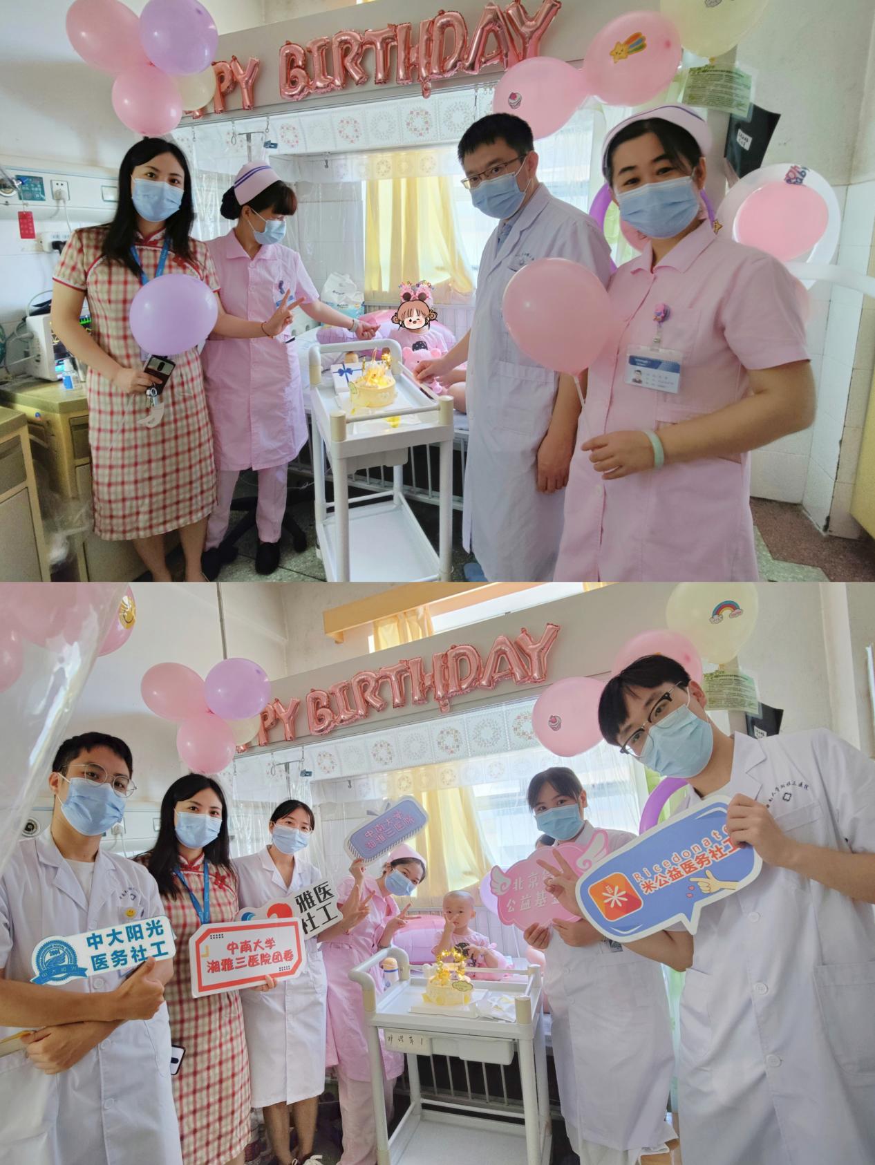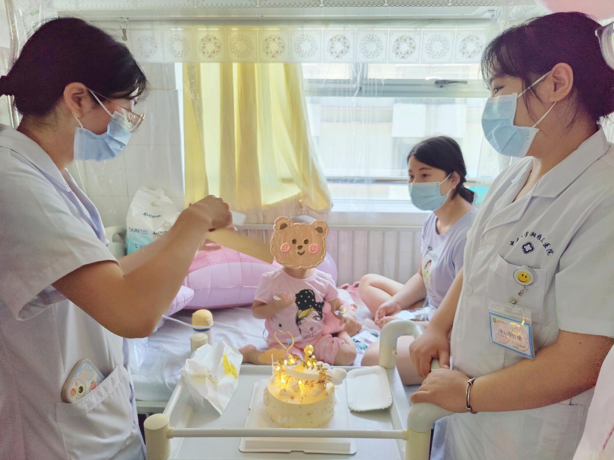 “祝你生日快乐,祝你生日快乐......”伴随着悠扬的歌声,中南大学湘雅三医院儿科主任杨明华,护理部妇儿片区科护士长卜平元,五病区护士长蔡骞,儿科副主任医师刘琳,院团委专干戴萍萍,部分医护人员、驻点医务社工带着蛋糕和礼物来到小朋友兮兮(化名)的病床前,为她举办了一个特别的生日会。一声声温暖的问候,一份份真诚的祝福,让病房瞬间变得暖意融融。