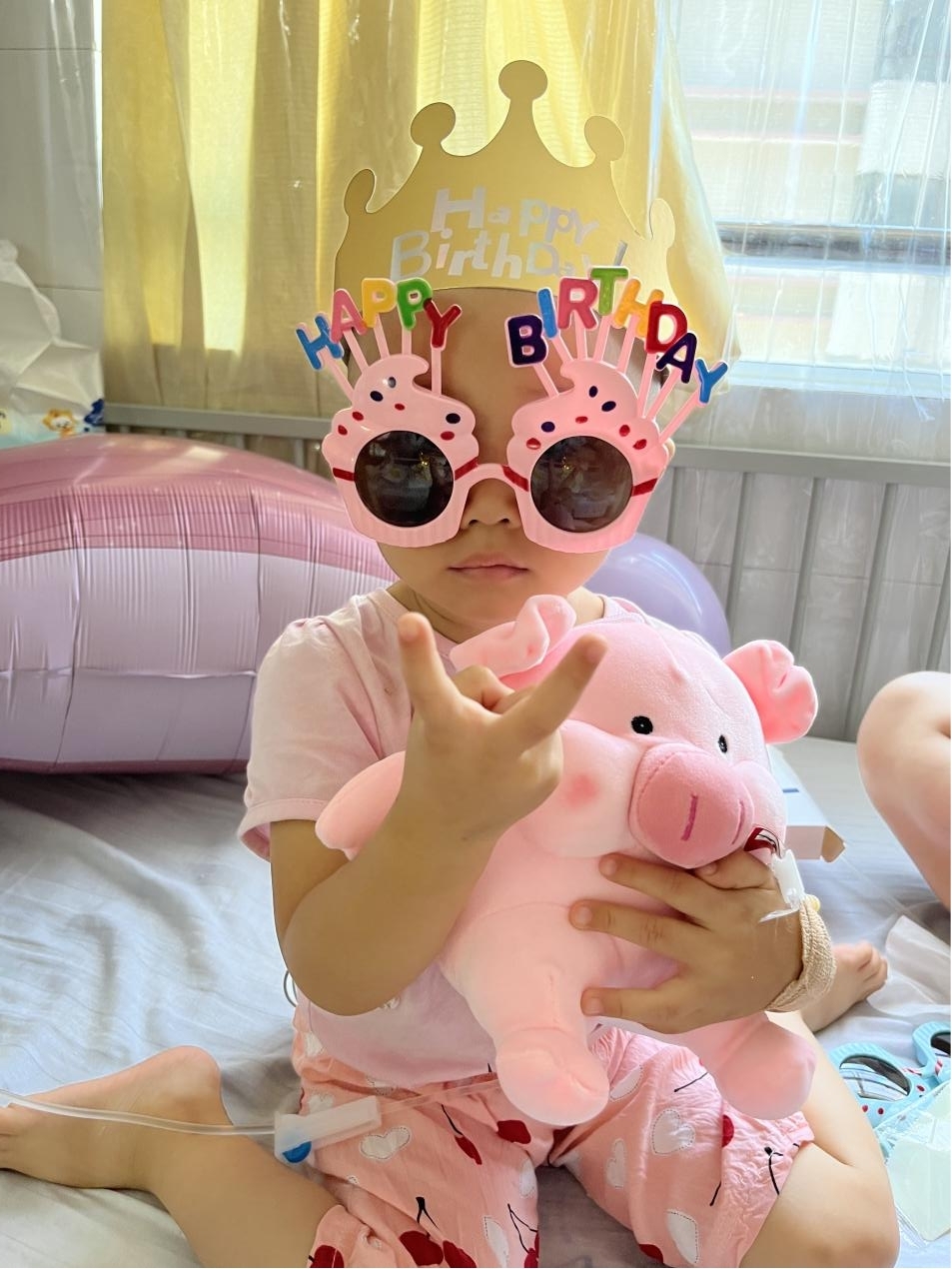 兮兮是新入院的一位小朋友,近期不幸确诊为“急性髓系白血病”,7月26日,恰巧是兮兮三岁的生日,童年本该是无忧无虑、五彩斑斓,但兮兮由于生病,不得不在医院度过,病房和治疗也成为了她童年中最特别的记忆。