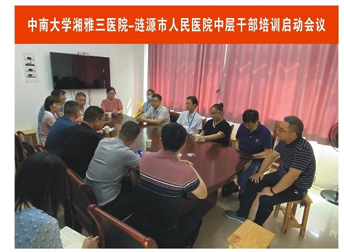 8月1日上午,中南大学湘雅三医院针对涟源市人民医院中层干部培训的启动会议在医院召开。涟源市人民医院党委副书记、副院长彭炳辉及市人民医院第一批参加培训的中层干部参加会议。医院党委委员、副院长欧阳文及相关部门、科室负责人出席会议,会议由医务部副主任刘作良主持。
