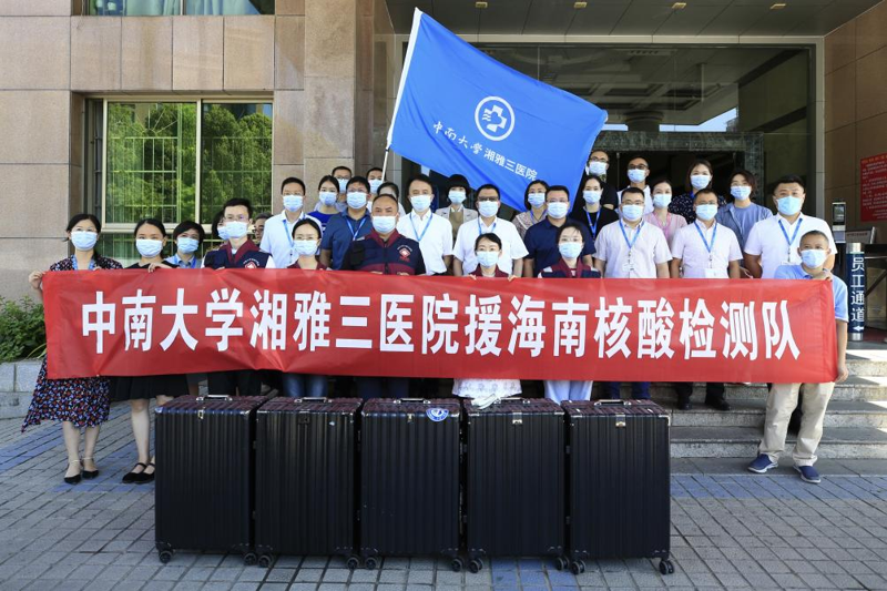 8月8日,按照国务院联防联控机制医疗救治组统一安排,湖南省紧急组建核酸检测队伍支援海南省开展核酸检测工作,中南大学湘雅三医院派出5名精干力量,随队奔赴海南支援抗疫工作。