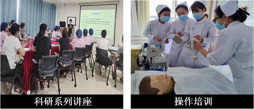 基地紧贴中华护理学会心血管专科培训要求,制定了详实全面的培训计划,进行多种形式的理论学习和临床实践。为确保教学的同质化,基地实行护理部、专科基地、护理单元三级管理模式,基地负责人统筹安排,专人负责,一对一负责学员带教。基地带教做到临床实践多点化,注重多学科、多病种综合培养;教学方式多元化,包括临床讲授、工作坊、疑难护理病例查房、小组讨论、现场访谈、情景模拟等注重培养评判性思维及临床综合能力;开展系列科研、护理安全讲座、心血管科普等,注重理论与实践的结合与转化;标准化随访与追踪访视,实现心血管慢病延续性管理;精准带教,实行个案撰写导师制等。学员们期间学有所得、学有所获、学有所长。