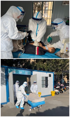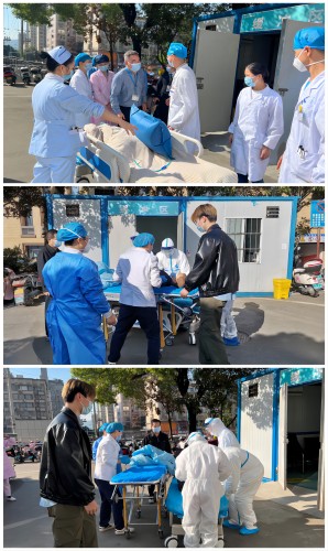 结合当前湖南省新冠肺炎疫情防控形势日益严峻的实际情况,10月19日上午,中南大学湘雅三医院急诊科开展红码危重患者的应急救治演练。医院党委委员、副院长欧阳文部署,护理部主任严谨、医务部副主任刘作良现场指导,护理部急救平台科护士长肖涛、 医务部刘丹骐、医院感染控制中心杨莎以及安全保卫部、后勤保障部相关人员共同参与。此次演练旨在进一步做好新型冠状病毒感染预防与控制工作,有效降低新型冠状病毒在医疗机构内的传播风险,提升急诊科处置新冠疫情突发情况时的实战能力。