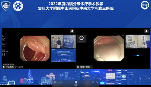 为积极贯彻习近平总书记在二十大报告中指出的“要促进优质医疗资源扩容和区域均衡布局,坚持预防为主,加强重大慢性病健康管理提高基层防病治病和健康管理能力”的党中央最新精神,10月19日下午,中南大学湘雅三医院消化内科王晓艳教授团队与复旦大学附属中山医院周平红教授团队通过5G+平台,与上海、湖南、河南、陕西等地的地市、县级医院实现上下联动,开展了一场高难度内镜手术的线上指导交流活动,线上参与量近万人次。