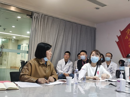 余希强调,脊柱外科康复科党支部全体医务人员要全面准确学习领会党的二十大精神,以奋发有为的精神助力健康中国,扎扎实实地立足工作岗位,争分夺秒地抢救每一位危重症患者,切实践行人民至上生命至上的理念。同时,要不断提高医疗服务水平和医疗质量,切实增强患者就医的获得感、幸福感、安全感。要不断向人民群众科普健康知识,倡导健康生活方式,不但让老百姓看得起病,治得好病,更要防得住病。同时,作为高校附属医院,要不断为祖国培养更多的优秀医务人员,以奋发有为的精神助力健康中国。