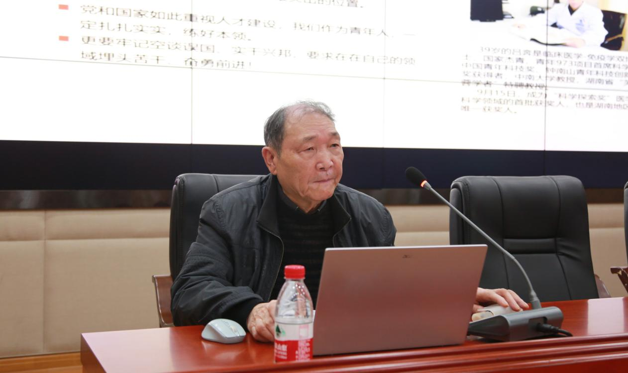 11月10日下午,中南大学湘雅三医院第十一党总支在科教楼三楼会议室开展专题党课,学习贯彻党的二十大精神,离退休老同志刘浔阳教授受邀为学生党员进行宣讲。医院离退休老同志郑兰香、离退休党总支书记杨华、研究生部主任袁秀洪和副主任李夏雨、党委宣传部副主任彭景舆及第十一党总支学生党员一百多人参加学习,第十一党总支书记刘典主持。