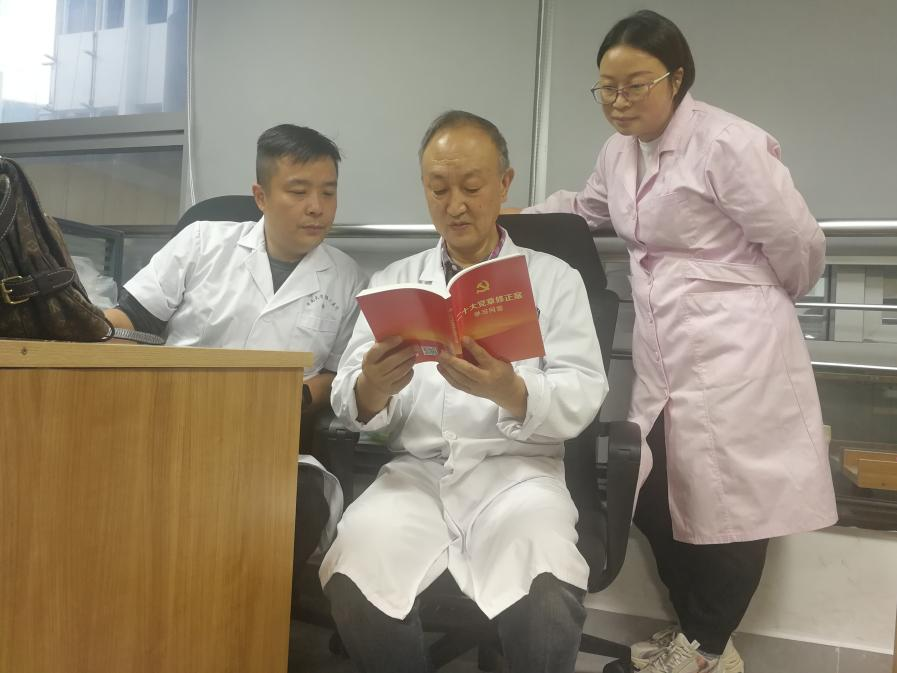 石光清是核医学退休返聘专家,作为离退休第三党支部书记,他除了参加离退休党支部活动,也从未缺席核医学党支部的活动。他时常与青年医护交心,讲学习体会、讲从医心得,毫无保留地分享经验。11月8日,石光清与科室青年医生交流学习二十大精神体会,他说:“党的二十大为我们指明了方向,人民至上、生命至上,我们核医学人要时刻把患者装在心里,坚持把解决临床问题作为矢志不渝的奋斗目标,不断为增进人民健康福祉作出新贡献。”