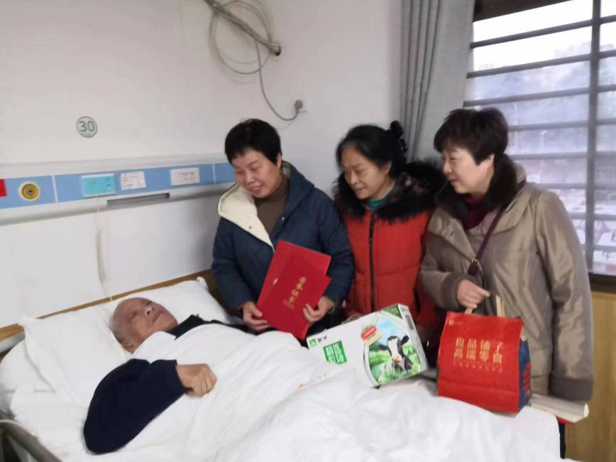 定期走访慰问老同志是医院党委关心关注关爱老同志的一项重要工作,二十大后的走访慰问中,医院老领导杨伯勋握着何庆南的手,语重心长地说:“党用伟大奋斗创造了百年伟业,也一定能用新的伟大奋斗创造新的伟业。我们要在党的领导下,继续发扬‘舍得’精神,为人民健康事业不懈奋斗!希望湘雅三医院在你们的努力下取得更大的成绩!”杨老还就医院人才培养、学科发展提出了建议。