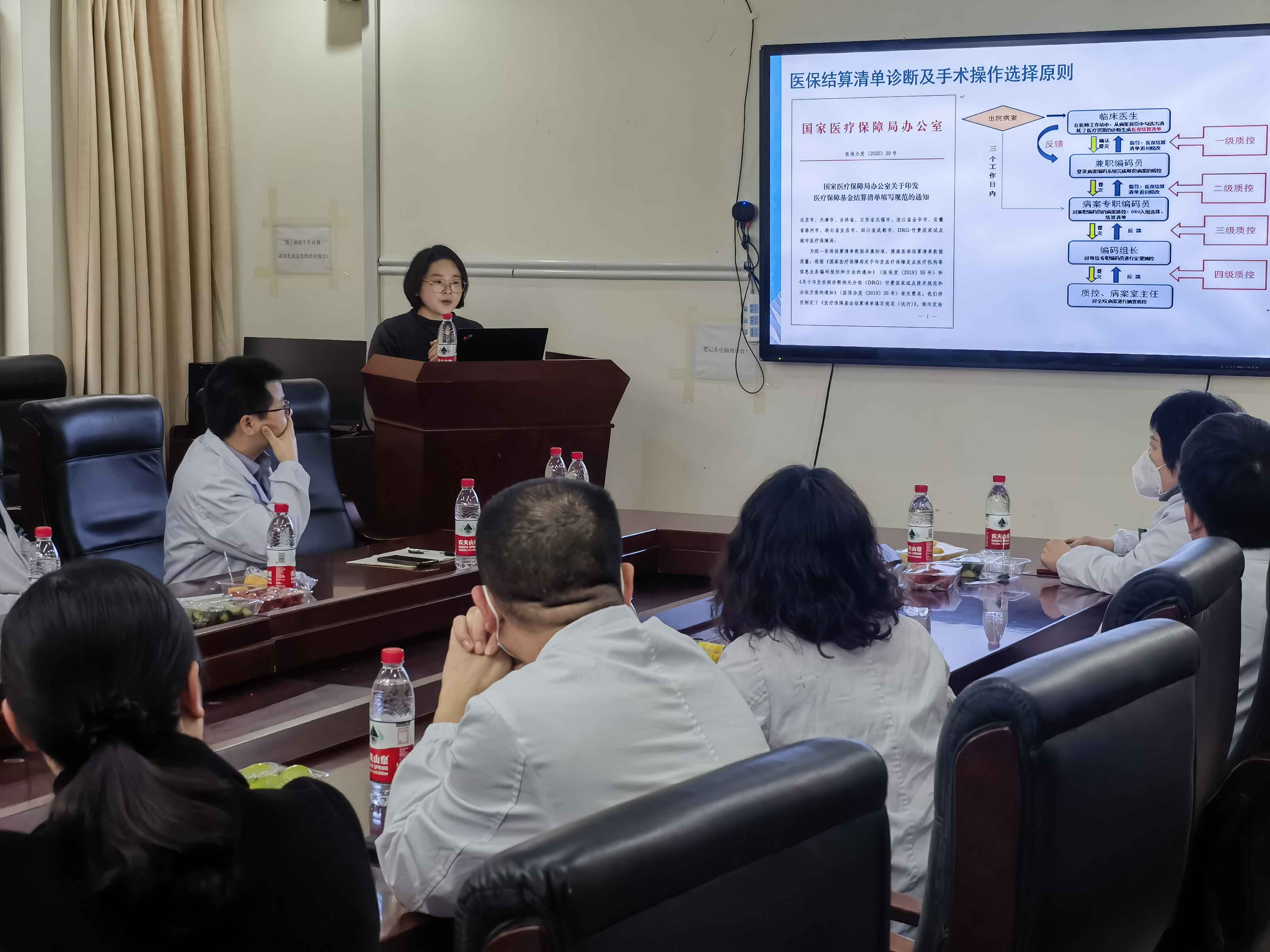2月8日下午,为进一步加深对DRG支付改革政策理解、提升DRG付费业务技能,规范肿瘤患者DRG编码工作,肿瘤科在肿瘤放疗中心二楼会议室举行“DRG医保支付政策解读及编码实践经验交流”研讨会。肿瘤科副主任(主持工作)刘学文主持会议,会议特别邀请了湘潭市中心医院放疗科副主任医师(兼职编码员)卢灿及医院医保科副主任谭焱进行授课与座谈交流;肿瘤科副主任黄程辉、医院医保科肿瘤医保专干卢桂、肿瘤科全体医生及护士、技术员代表参与了此次研讨会。