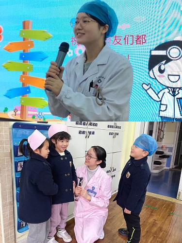 活动从一场妙趣横生的科普小故事——“小耳朵的故事”开始。张庆坤医生用生动活泼的语言、惟妙惟肖的表情、引人入胜的表述带领孩子们学习了耳朵的结构、如何发现耳朵的疾病以及保护耳朵的重要性。孩子们学习热情高涨,现场互动热烈。